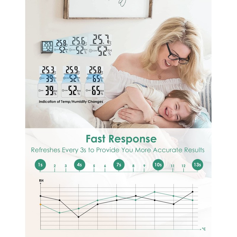 - Hoyiours Digital Thermal Hygrometer Large LCD Screen Smiley Display 3 Seconds Quick Update Mini Humidity Monitor for Office School Greenhouse Set of 3 Black Thermometer Hygrometer Indoor Black