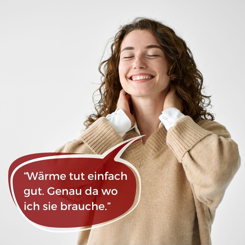 Wärmeauflage in perfekter Passform für den Schulter-/Nackenbereich. Vier luft-aktivierte Wärmekammern sorgen für wohltuende Tiefenwärme. Das Wärmepflaster ist bequem im Alltag unter der Kleidung tragbar.