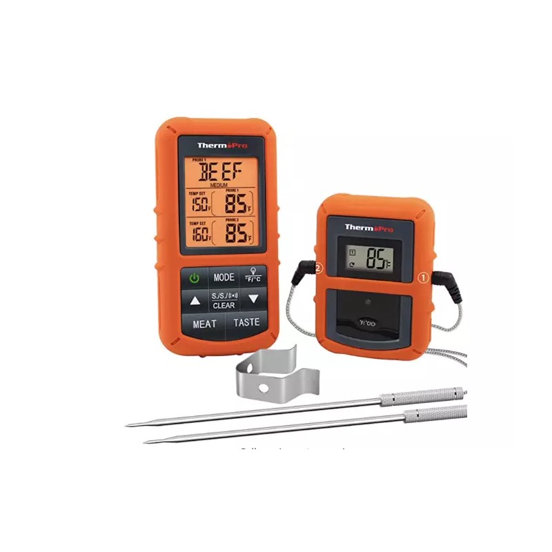 ThermoPro TP20S includes two probes that enable you to monitor two kinds of meat or use one sensor as an oven probe that will accurately read its surrounding temperature. With a mobile receiver range of up to 300 feet away, you can finally step away from the kitchen and feel free to do other activities without having to go back and forth to check on your food. Grill thermometer features sensitive sensor and STEP-DOWN probe tip design to always get you the best results precisely and quickly.