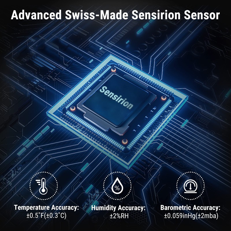- Highly Accurate, Weatherproof, Rechargeable Sensor: This wireless thermometer features a Swiss-made Sensirion temperature sensor with a sealed design that is accurate to ±0.5°F, and able to work in rain or snow, or even in temperatures as low as -40℉(-40℃)