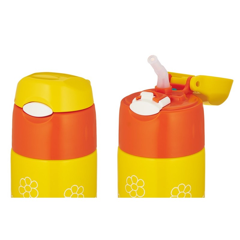 Thermos FHL-401FB YF Vacuum Insulated Straw Bottle, One Touch, 13.5 fl oz (400 ml), Miffy Yellow Flower