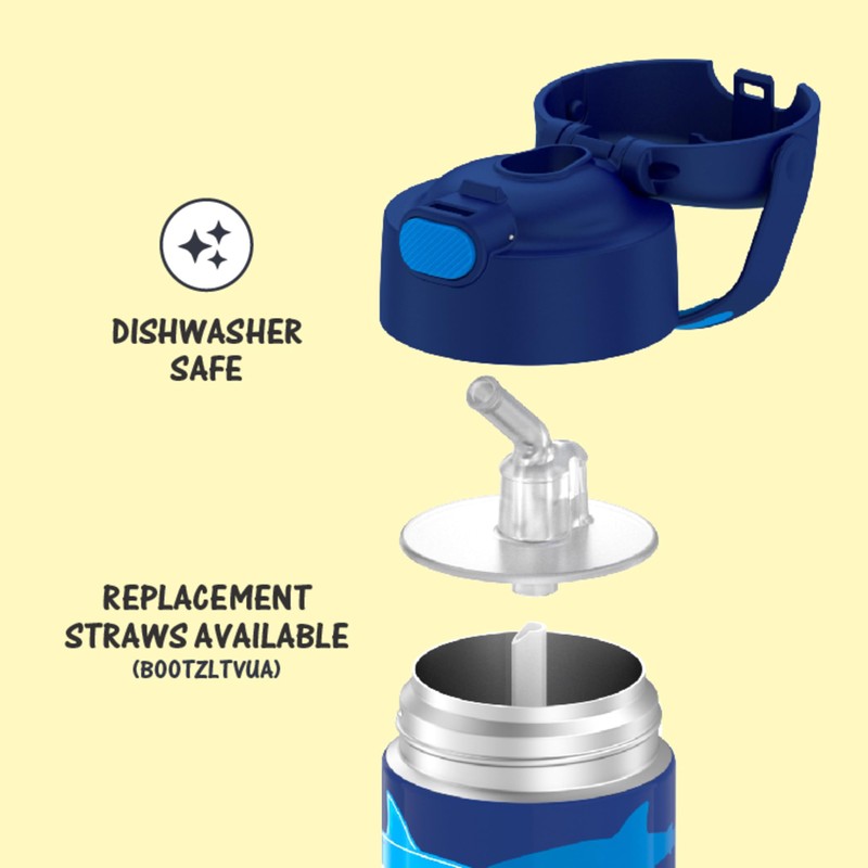 THERMOS FUNTAINER 12 Ounce Stainless Steel Vacuum Insulated Kids Straw Bottle, Sharks