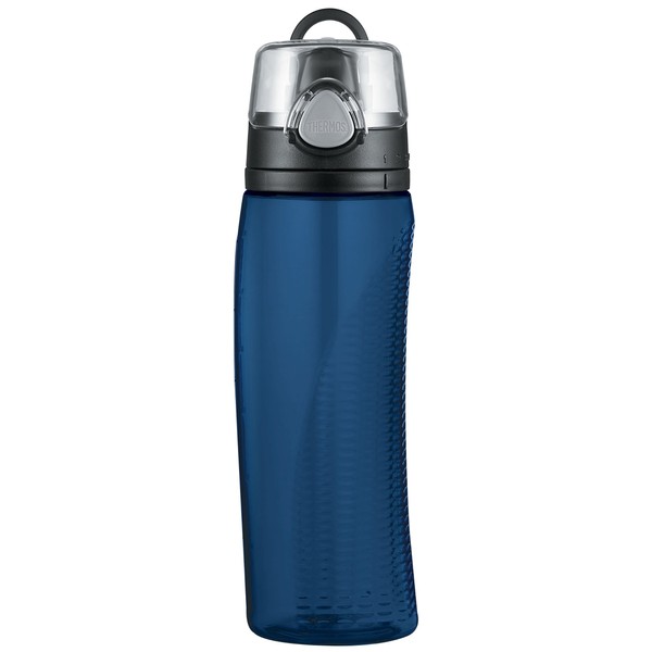 Thermos Intak Hydration Bottle is made from BPA free, impact- resistant, dishwasher durable Eastman Tritan copolyester. It has a locking leak-proof lid with one-hand push button operation. Theres a flip up loop for easy carrying; ergonomic design for comfortable usage. Monitor your intake with the rotating intake meter- perfect if you are trying to get those 8 glasses of water in everyday. Ideal for water, iced tea, juices and sports drinks: 24-ounce capacity.