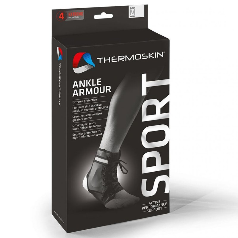 Thermoskin Ankle Armour may provide support for medically diagnosed ankle injuries such as Medial Ligament injuries and Lateral Ligament injuries. The brace provides rigid support while allowing surrounding muscles to move. May be useful for individuals with a history of ankle injuries.