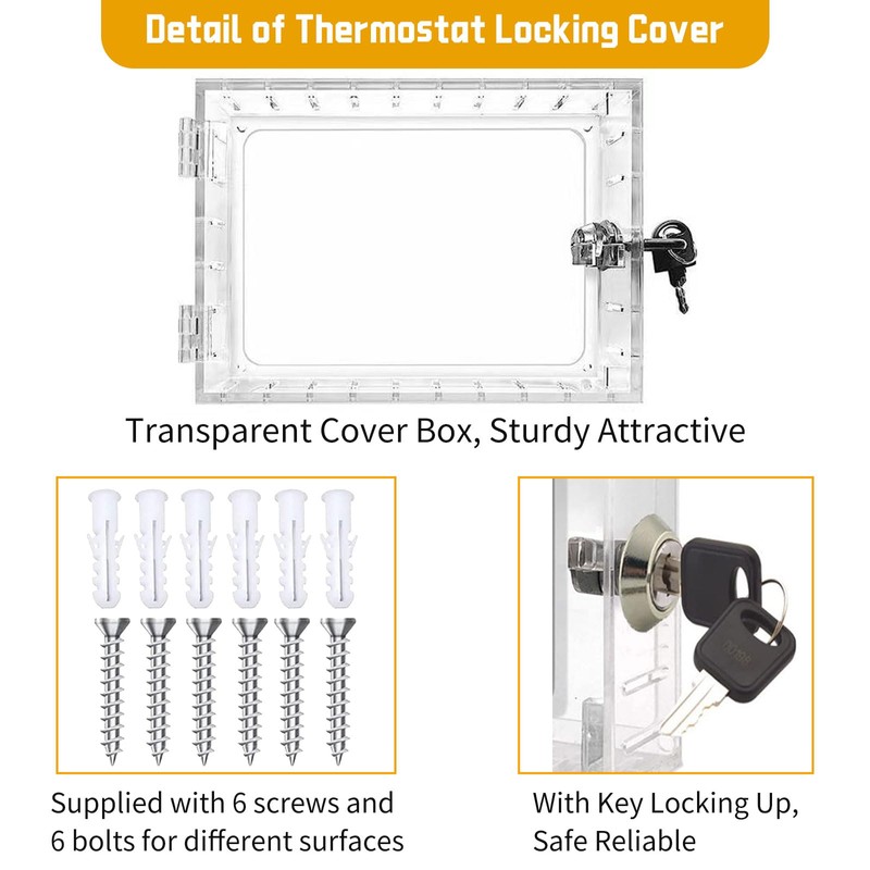 - 【Sturdy and Durable】The transparent thermostat lock box is made of high quality acrylic, which is more durable than the plastic thermostatic lock box. It does not discolour or yellow and maintains inner vision even after prolonged use.