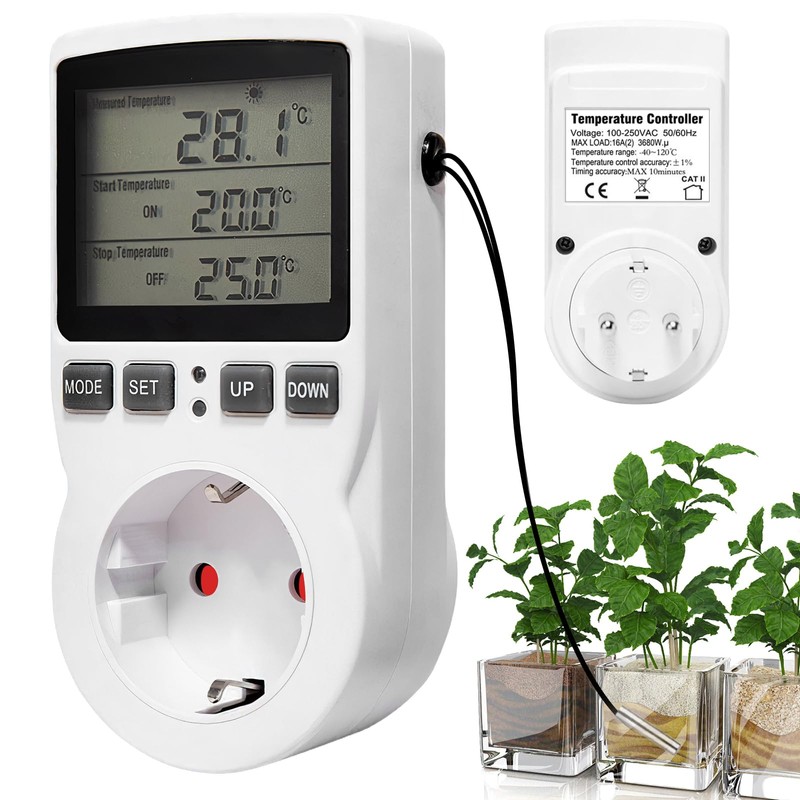 - Versatile functions: the thermostat socket has a backlit LCD display and a function for temperature calibration. The memory function allows you to save all settings even after a power failure.