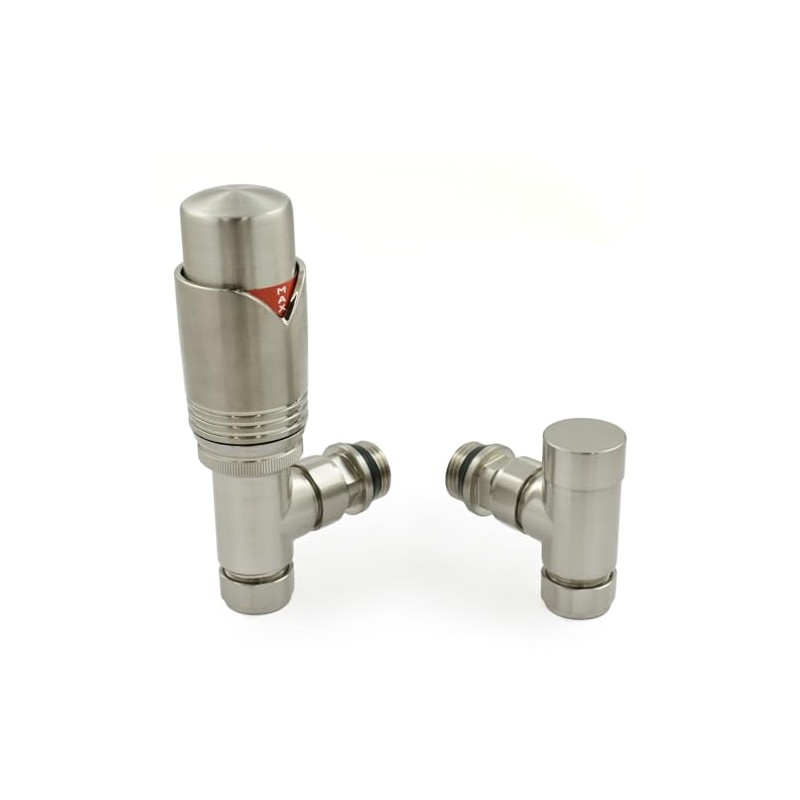- The valves are constructed from Brass and finished in a Satin Nickel, ideal for radiators in a Brushed Stainless Steel finish.