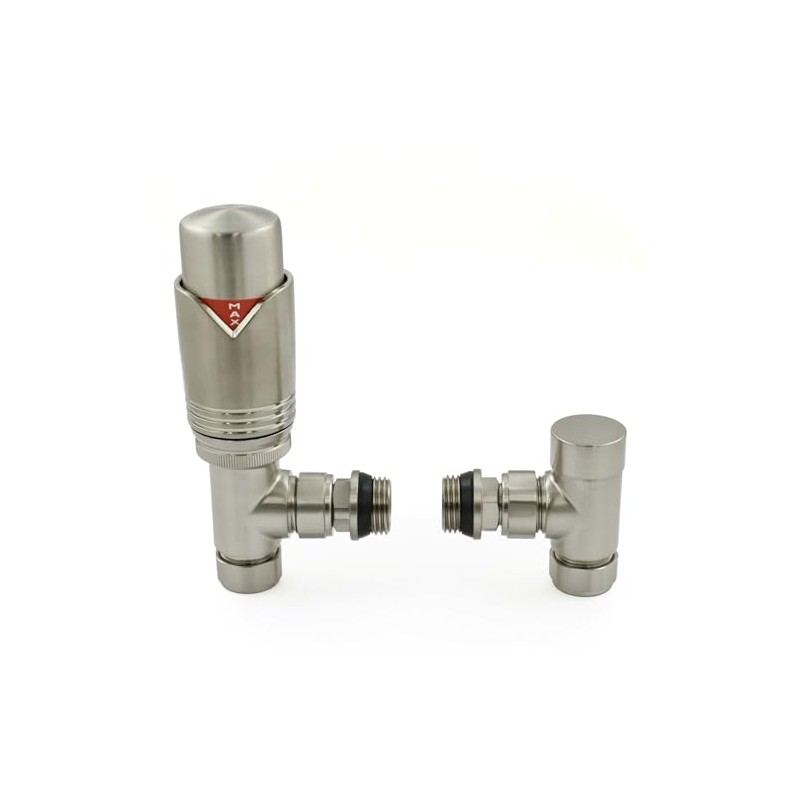 Thermostatic Radiator Valves Set - Realm Angled TRV Satin Brushed Nickel - 15mm