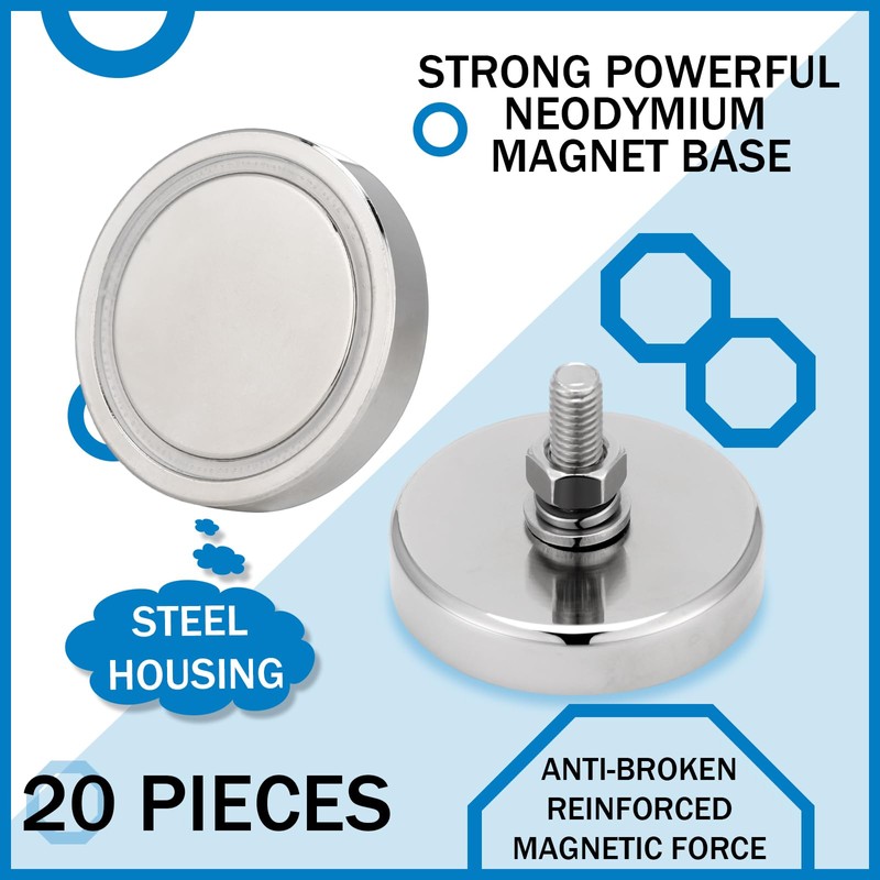 - Packing List: a total of 20 pieces of 150 lb powerful magnets heavy duty with M6 male thread in the package, coming with nuts and washer, which are suitable for lighting, cameras, brackets, and more, providing you with a good use experience