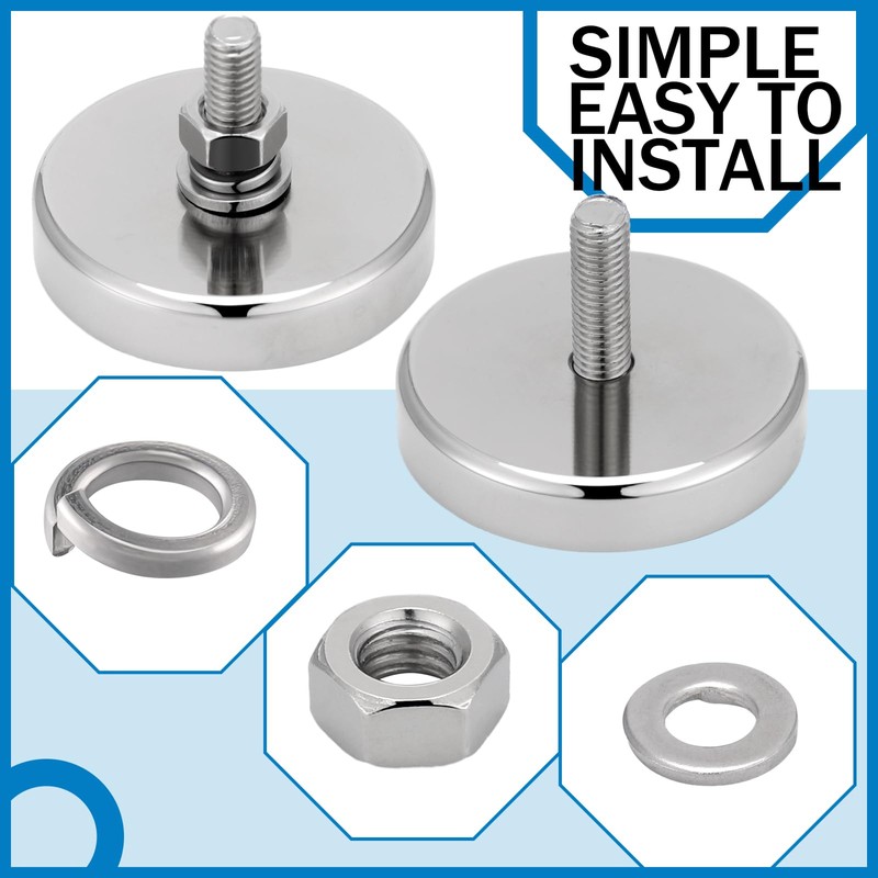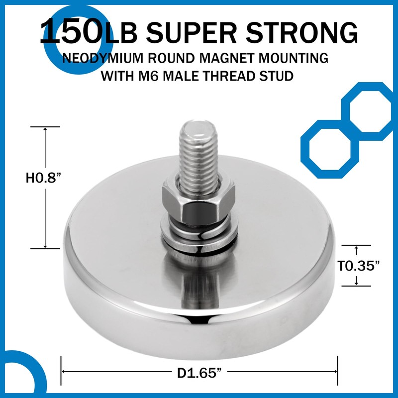 - Great Performance: the threaded magnet is N42 neodymium magnet, and the metal base is 0.35 inches/ 8.6 mm thick; It can withstand up to 150 lbs of vertical pull; Sturdy and practical, our magnet is covered with steel that can withstand force without cracking and damaging the magnet