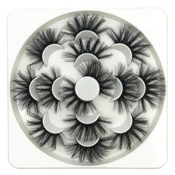 Thick False Eyelashes, 7 Pairs 25 mm 8D Faux Mink False Eyelashes, Handmade Eyelashes, Cruelty Free Dramatic Long Wispies, Fluffy Eyelashes