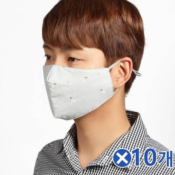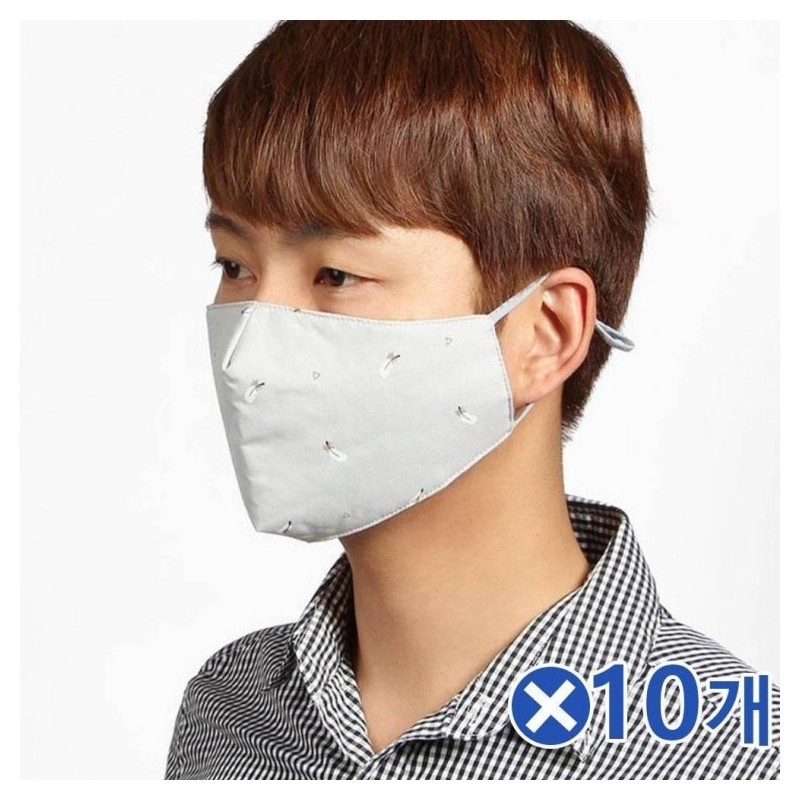 Thick Feather Pattern 3-Layer Filter Cotton Mask Gray x 10 pcs
