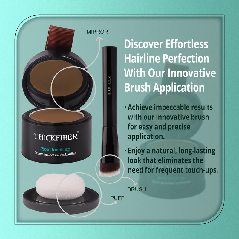 - INSTANTLY CONCEALS THIN HAIRLINE AND COVERS GRAY ROOTS: The THICK FIBER Root Touch Up Powder is your secret weapon for effortlessly concealing thin hairlines and those unwelcome gray roots. With a few quick strokes, watch as the hair concealer powder works its magic, providing you with instant coverage that camouflages imperfections and boosts your hairline's fullness.
