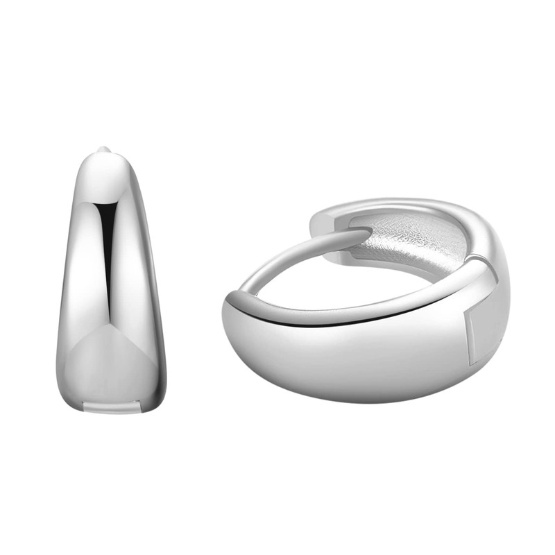 Thick Hoop Earrings for Women Girls, Chunky Huggie Earrings in 925 Sterling Silver and 14k Real Gold Plated for Everyday Wear, Inner diameter: 10.0mm, Sterling Silver, No Gemstone