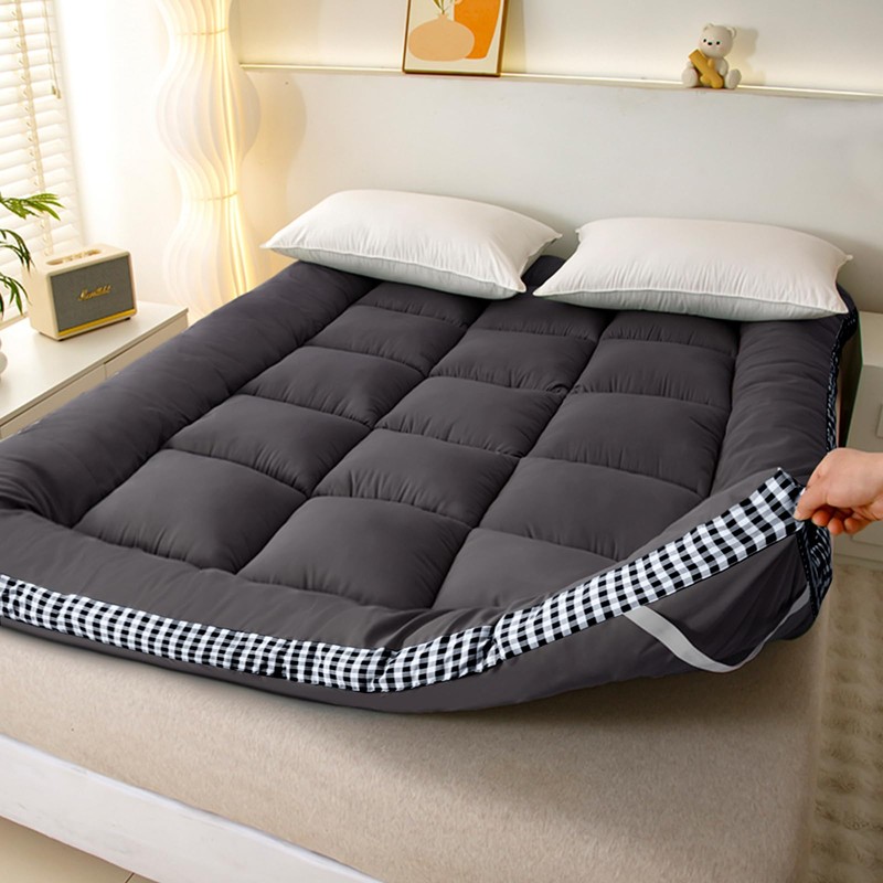Thick Mattress Topper Twin Size - Non-Slip Mattress Pad Cover for Back Pain Breathable Folding Sleeping Pad Machine Washable Mattress Protector (39x75 inch,Black)