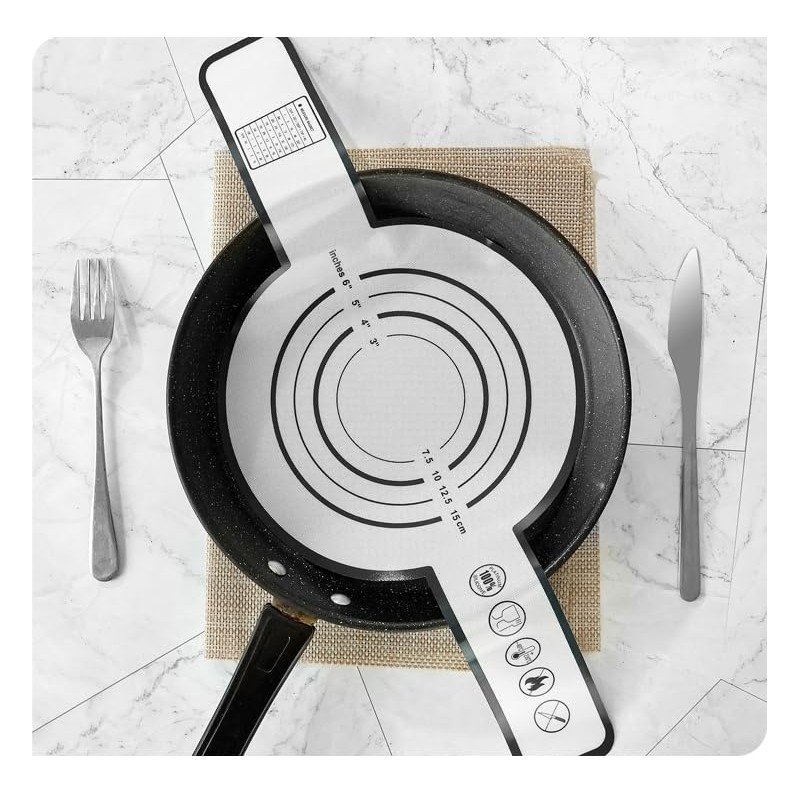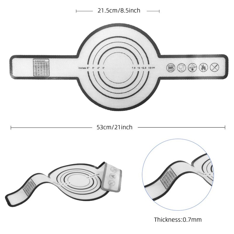 - The lines showing, 3”, 4”, 5”, 6” diameters on the middle of the bread baking mat. This will help you when you roll out dough.