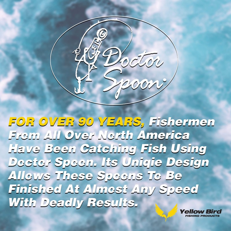 Thin Doctor Spoons Trolling Series 5 Pack - Saltwater & Freshwater Fishing - Also for Jigging - Great for Salmon, Trout, Bass, Pike, Striper Rainbow & More - Premium Eagle Claw Hooks - Yellow Bird