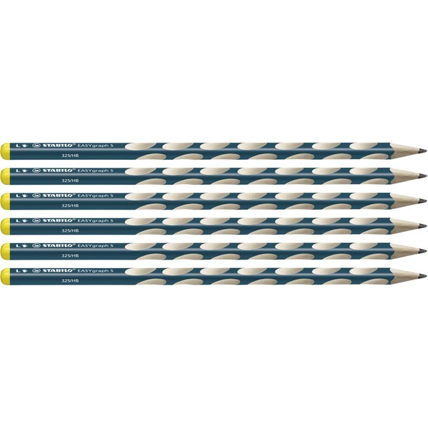 Thin Ergonomic Graphite Pencil - STABILO EASYgraph S - Left-Handed - Pack of 6 - Petrol - HB