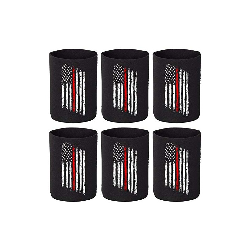 Thin Red Line American Flag Coozie Cozie Live Matter Firefighter Gifts Beer Sleeves BLACK