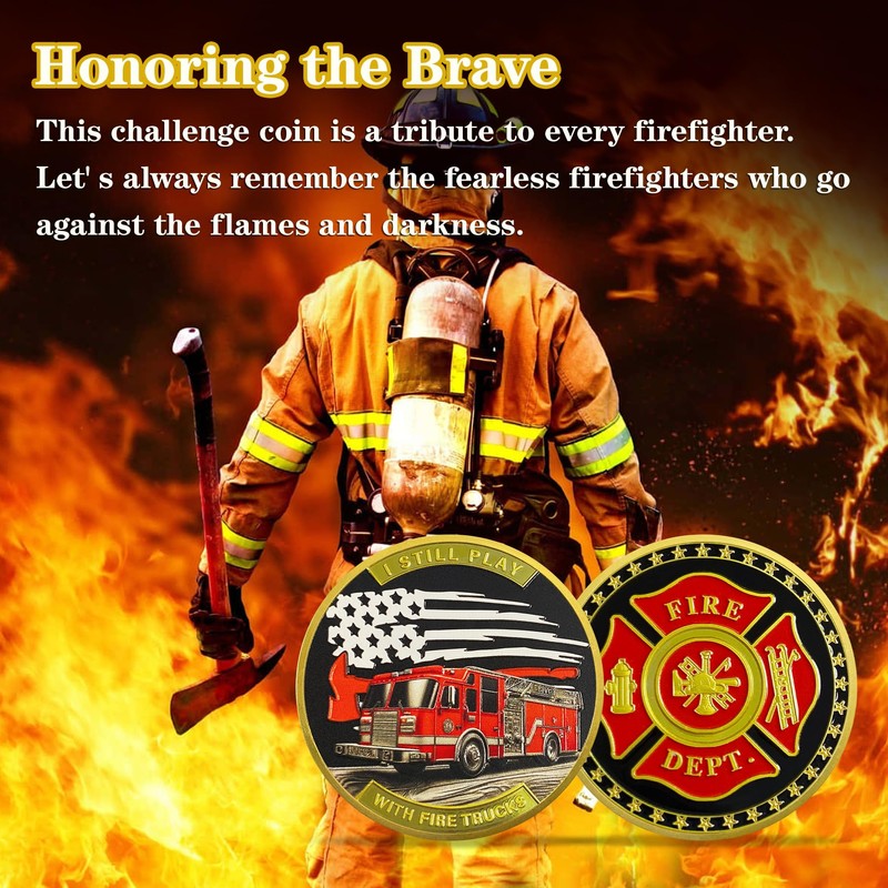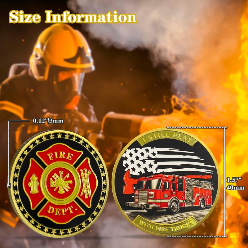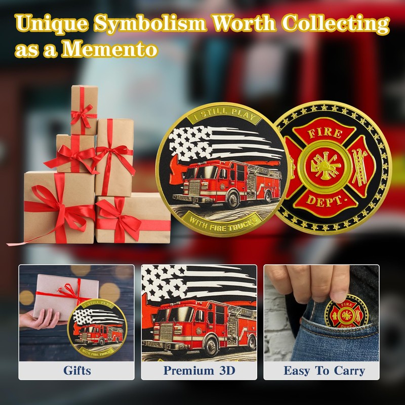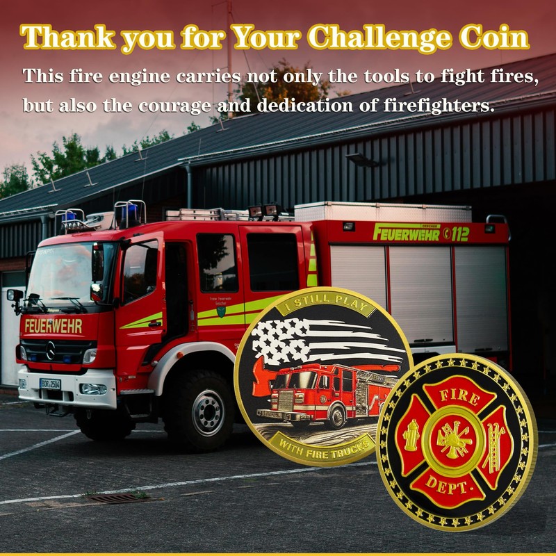 Thin Red Line Fire Department Challenge Coin Gift Firefighters Fireman - I Still Play with Fire Trucks