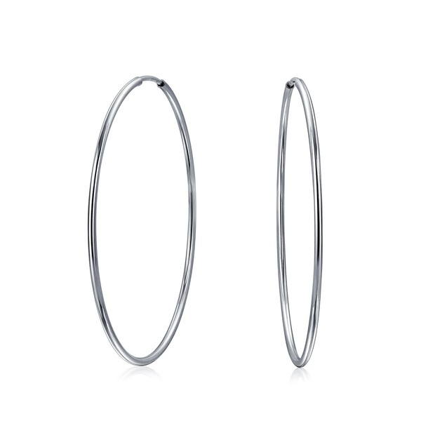 Thin Simple Minimalist Round Shaped Endless Continuous Tube Hoop Earrings For Women Teens .925 Sterling Silver 1.75 Inch Diameter
