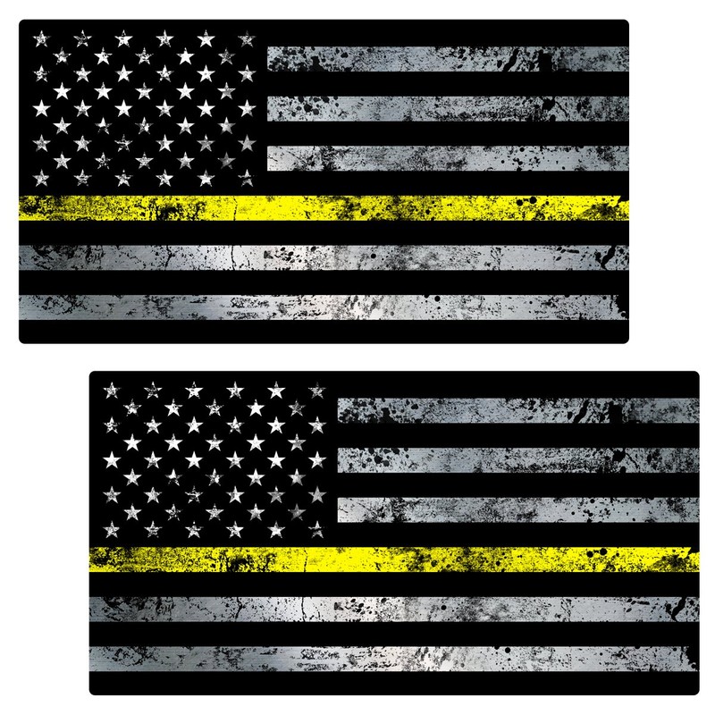 Thin Yellow Line Flag Grunge Stickers 2 Pack