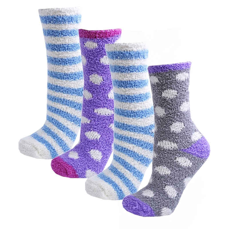 Thingimijigs 4 Pairs Ladies Striped & Spotty Patterned Soft Fluffy Socks