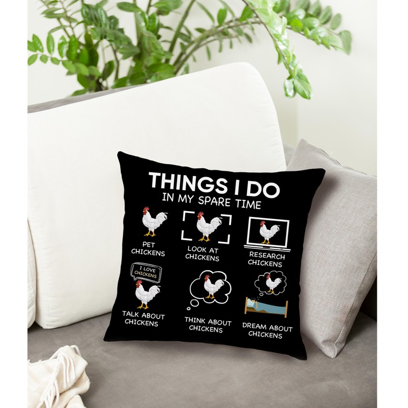 Things I Do in My Spare Time Funny Chicken 18 x 18 Inches Throw Pillow Covers,Bedroom Living Room Girl Room Home Decor,Chicken Farm Girl Ladies Gifts,Chicken Lovers Mom Gifts