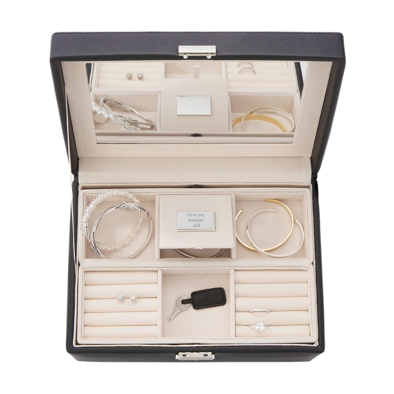 THINGS REMEMBERED Engraved Vegan Leather Large Jewelry Box in Black (Free Customization)