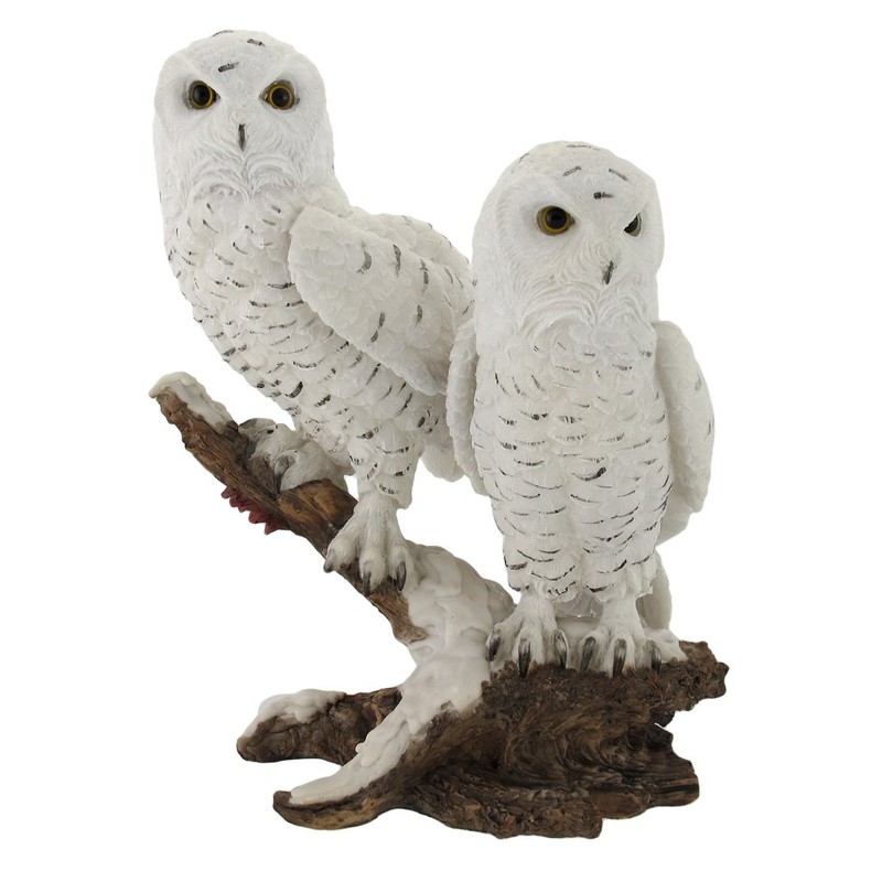 Things2Die4 Pair of Snow Owls on a Branch Statue