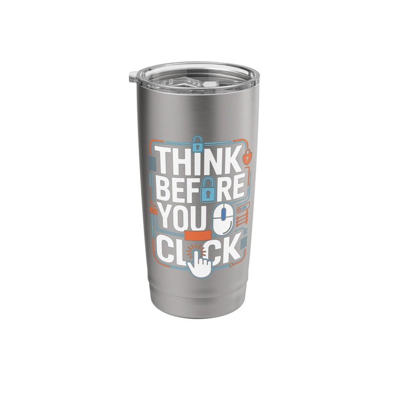Think Before You Click Cybersecurity Cyber Security Engineer Stainless Steel Insulated Tumbler