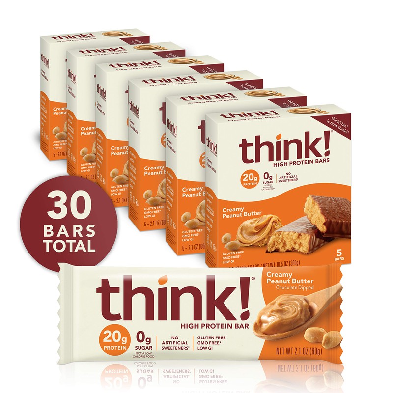 - Includes 30 Think! (thinkThin) creamy peanut butter Bars in six 5 count packs.