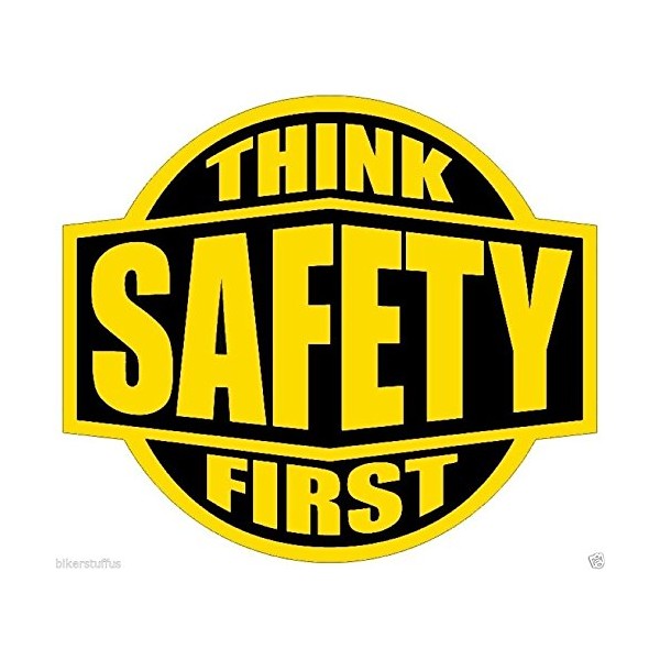 • THINK SAFETY FIRST HARD HAT STICKER YELLOW ON BLACK