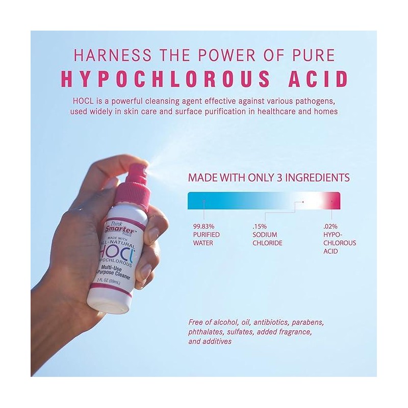 Think Smarter Products Three (3) - Pack (2oz, 8oz & 16oz) HOCl Hypochlorous Spray for Multi Use Cleaner Cleaning
