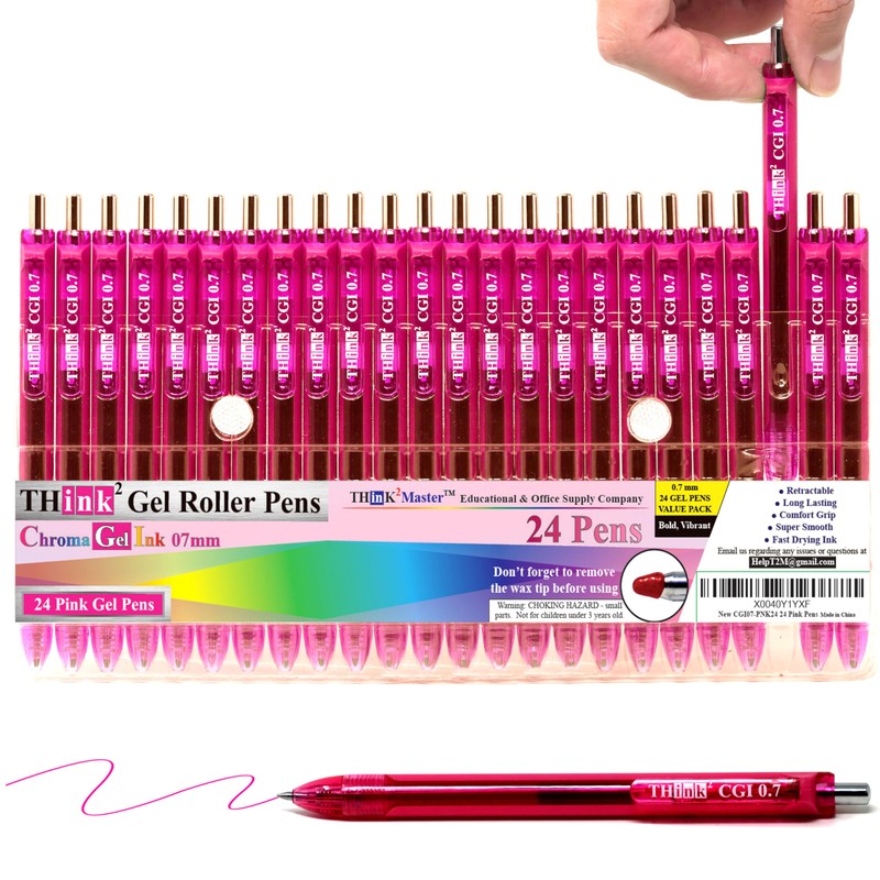 THINK2MASTER [24 Pens - Pink Ink] Think2 0.7mm CGI Retractable Gel Pens. (24 Pink) Medium Point Rollerball Pens with Smooth Quick Drying Ink.