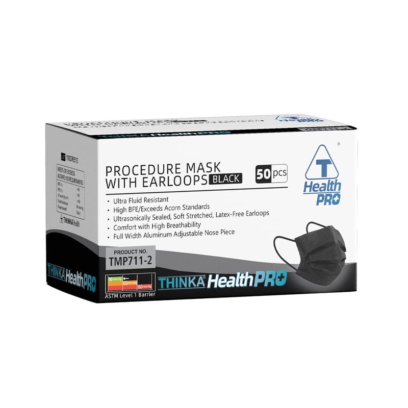 THINKA FACE MASK WITH EARLOOPS (50pcs) - [BLACK]-Medical Mask - Surgical Mask -ASTM Level 1 Mask