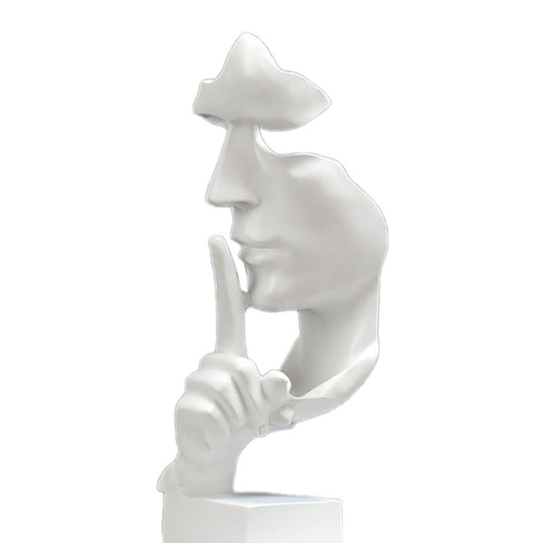 Thinker Statue,Silence is Gold Abstract Art Figurine Keep Silence Statue Home Resin Sculptures Decorative for Study Office (White)