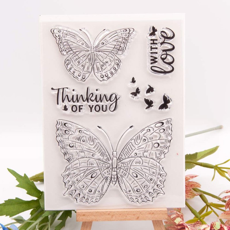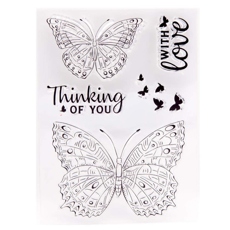 Thinking of You with Love Butterfly Clear Stamps for Card Making Decoration and DIY Scrapbooking Tools Rubber Stamps