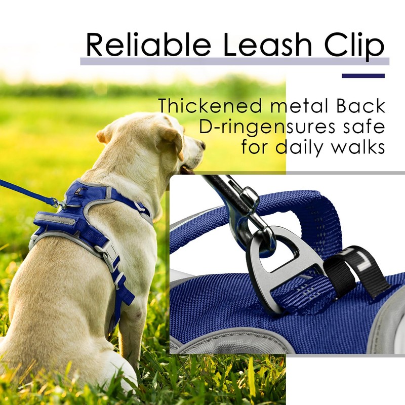 ThinkPet Anti-Pull Dog Harness, with Handle, Easy to Control, Adjustable, No Choking, Reflective, Breathable, Padded (L, Royal Blue)