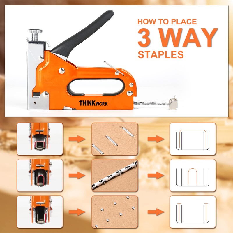 THINKWORK Staple Gun Heavy Duty with 900 Staples, 3 in 1 Cable Stapler for Wood, Upholstery, Fencing, Furniture, Decoration