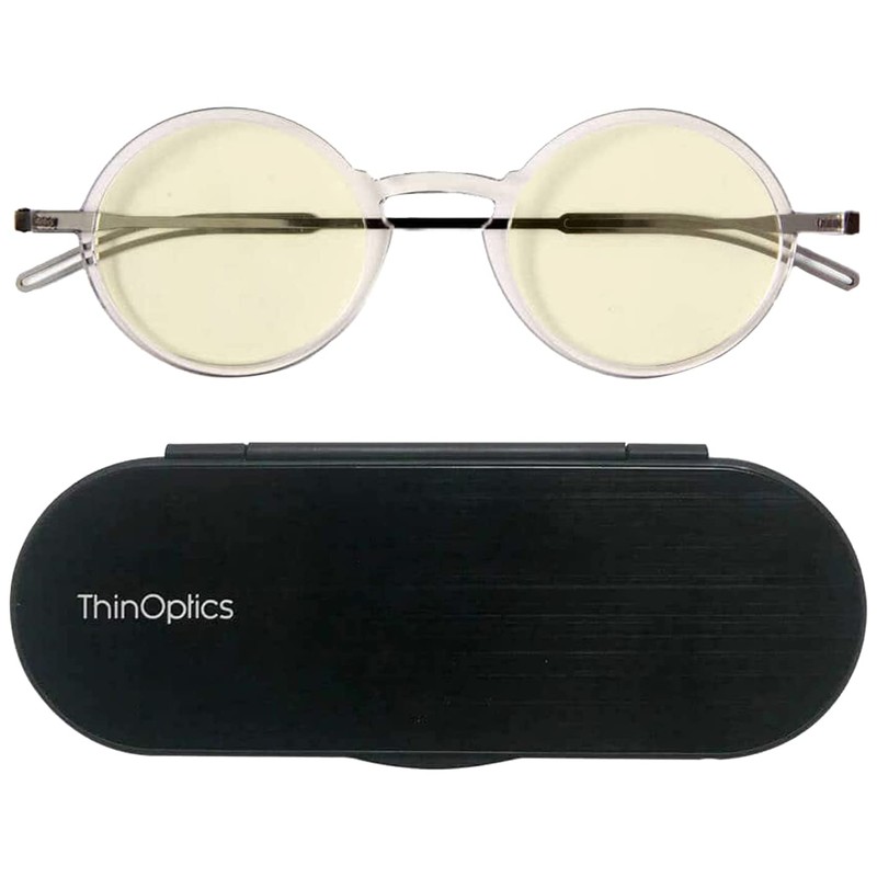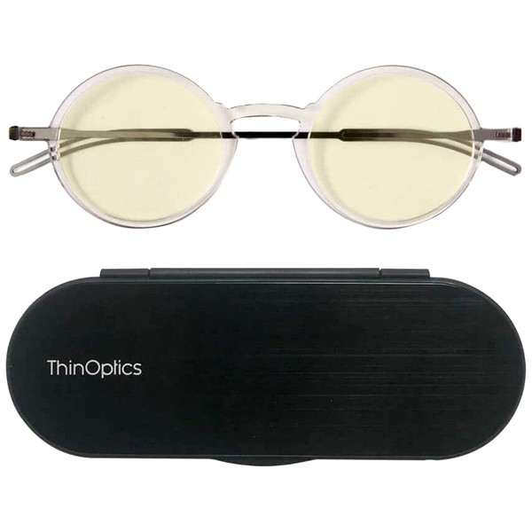 ThinOptics Manhattan Blue Light Blocking Glasses Reading, Round/Clear, 44 mm + 0