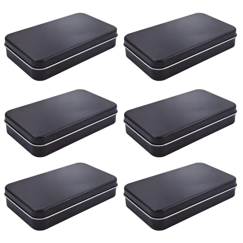 Thintinick 6 Pieces Rectangular Metal Empty Hinged Tins Containers Basic Necessities Home Storage Organiser Mini Box Set, 15 x 9 x 3 cm (Black)