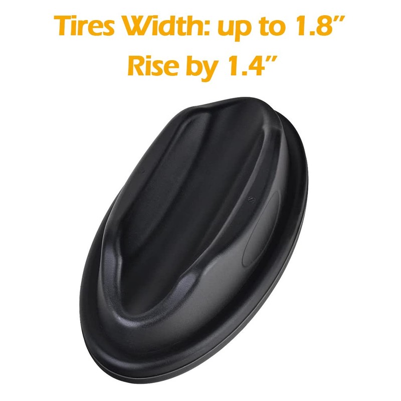- Se adapta a la mayoría de neumáticos de bicicleta de carretera y montaña, ancho de neumáticos de hasta 1.8 pulgadas. Proporciona un aumento de 1.4 pulgadas. (No compatible con neumáticos de bicicleta gordos)