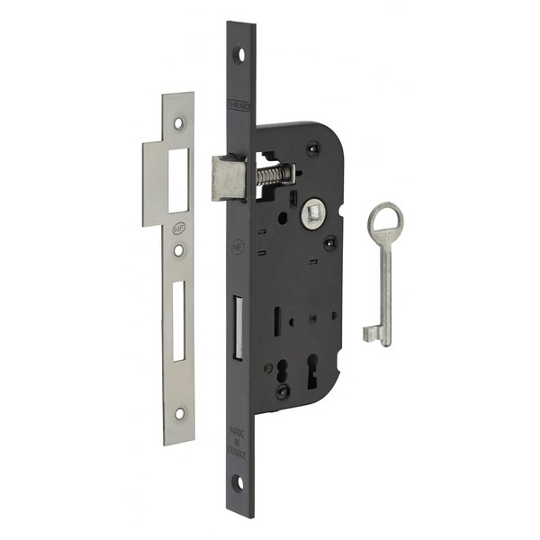 THIRARD - NF Mortice Lock with Key for Room Door Axle 40mm Square Ends Black 1 Key