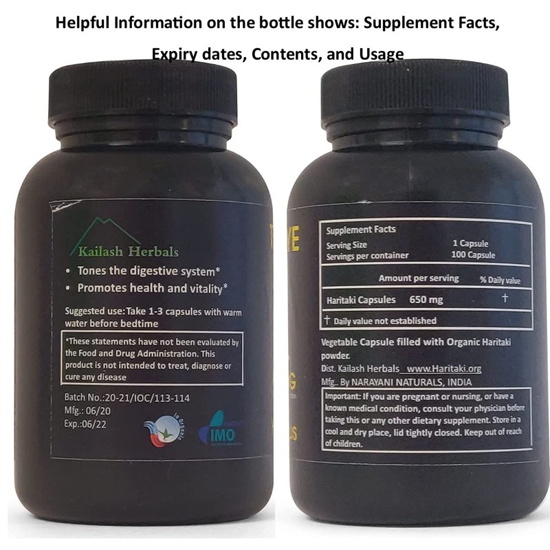 Third Eye Awakening - Organic Haritaki Capsules- Kailash Herbals-100 Capsules- 650 mg Each-Terminalia chebula- Vegan