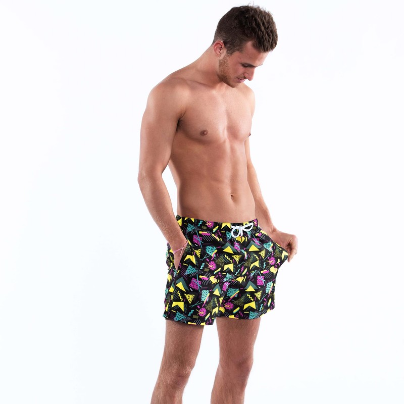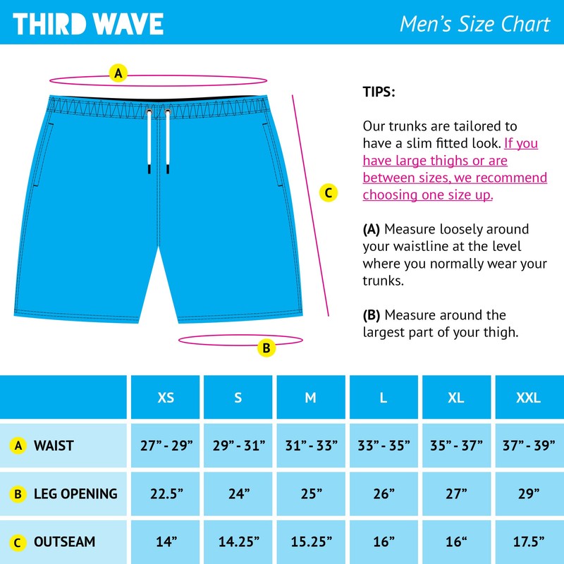 Third Wave 5” swim trunks are made with stretchy polyester spandex fabric that feels great and looks good. They have a mid thigh design, fitted look, and feature stylish patterned prints. The built in brief liner is made of soft mesh that is super comfortable and adds support and privacy. The elastic waist and drawstring guarantee a great fit. With deep side pockets, coin pocket, and zipper back pocket there’s plenty of space for your stuff. And, the pockets are mesh lined for quick drying. Quality details include metal tipped drawstrings, metal eyelets, and a strong zipper on the back pocket.
