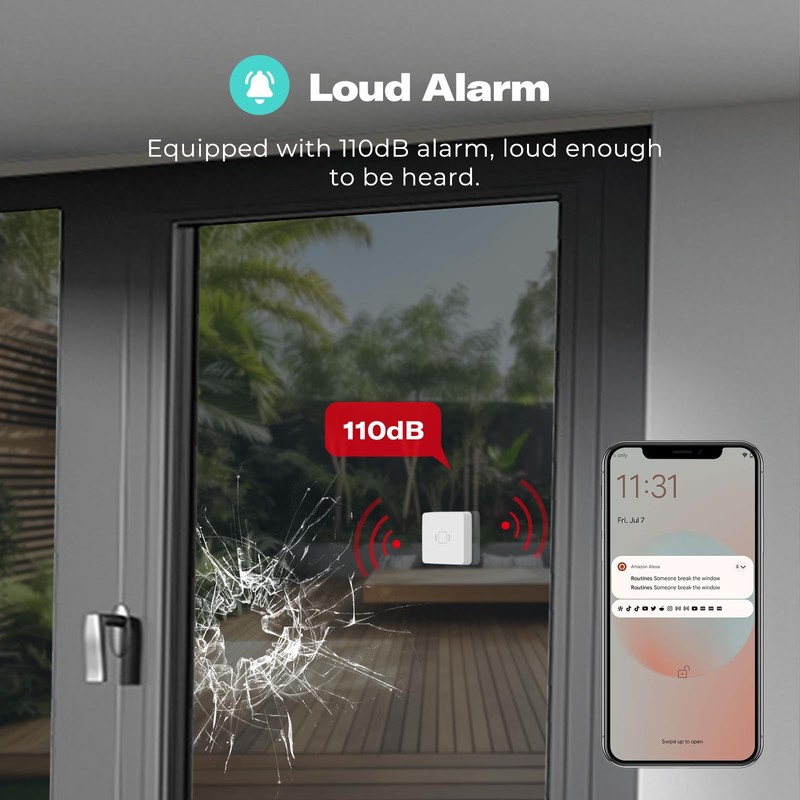 - Routine Creation: Enables the setup of smart routines when paired with a compatible Zigbee hub, enhancing your smart home experience with automated alerts and notifications. From sending alerts if a window breaks or notifying you when appliances like washing machines or dryers have stopped running. This can contribute to a more efficient and responsive smart home.