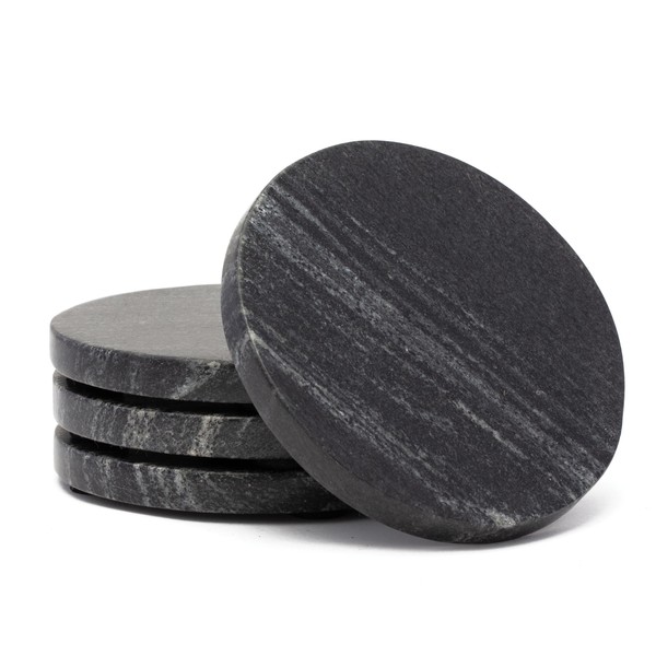 Thirstystone 4 Pack Natural Black Marble Round Coasters with Protective Felt Feet on The Bottom 4" Diameter Elegant Heat Tolerant Easily Wipes Clean