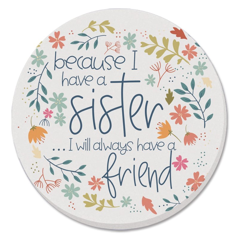 Thirstystone Because of Sister Single Round Absorbent Stone Coaster with Protective Cork Backing Manufactured in The USA 4" Diameter