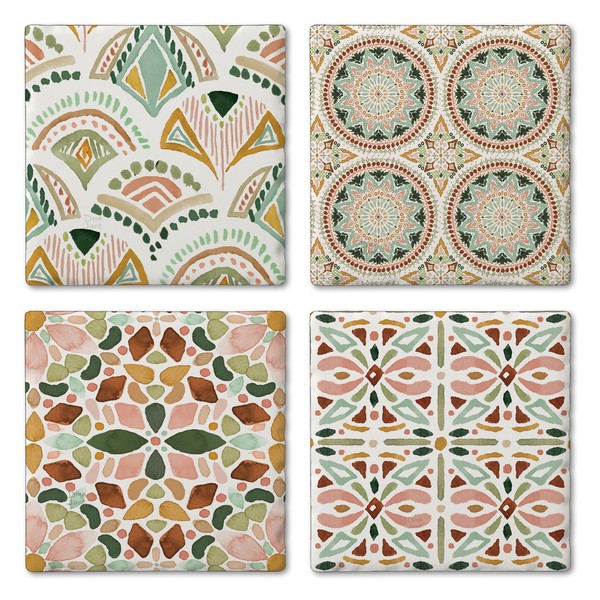Thirstystone Bohemian Tiles 4-Pack Tumbled Tile Stone Coasters with Protective Cork Backing Manufactured in The USA